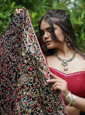 Work - Handwork of Small mirror in blouse, front and back. Fine thread work in Kashmiri style for Dupatta